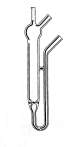 U shaped, 1/4" ground glass stem on one side, 1/2" ground glass on the other.
